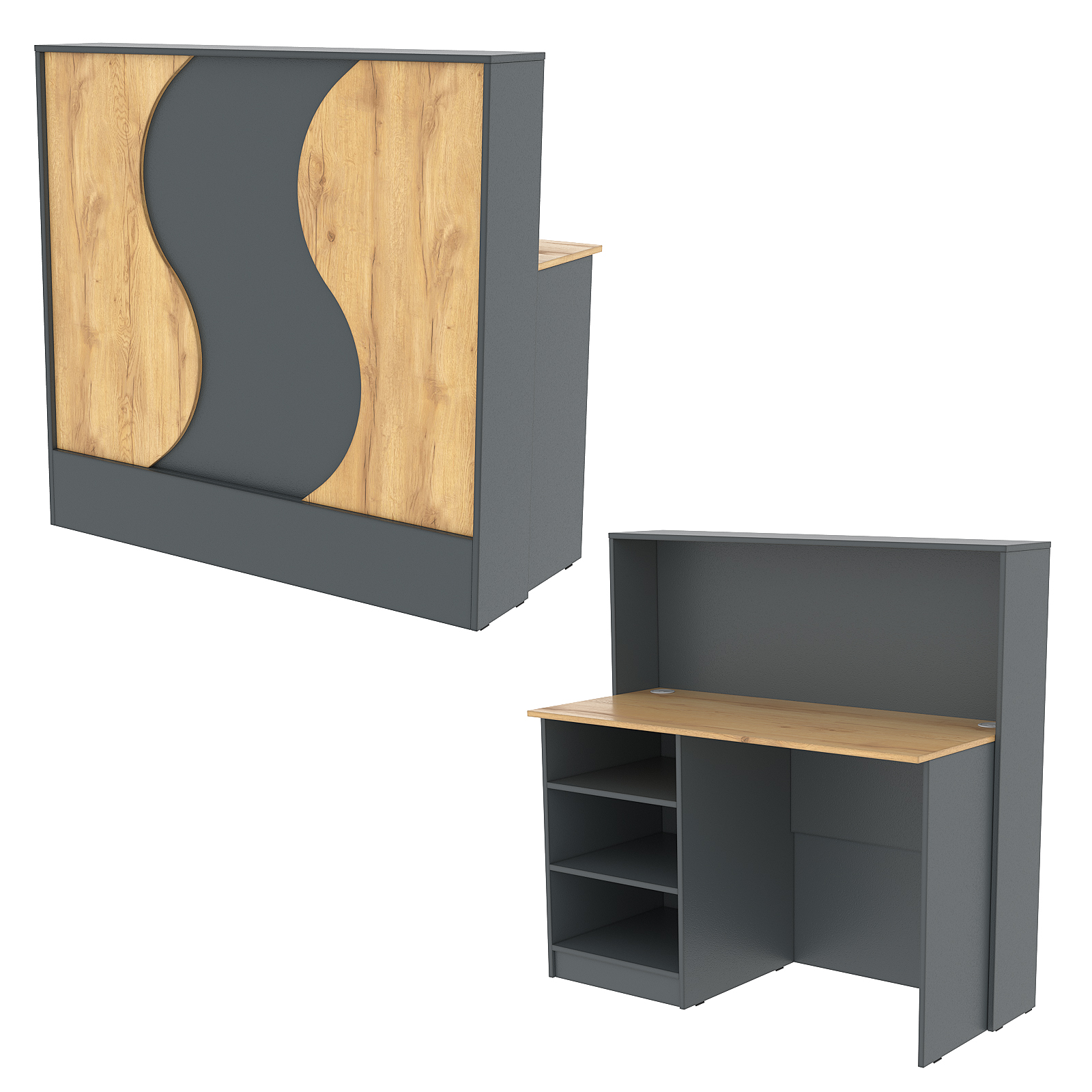 Ресепшн "Нежность Волны" №1В с левосторонней открытой тумбой, Темно-серый и Дуб Золотистый