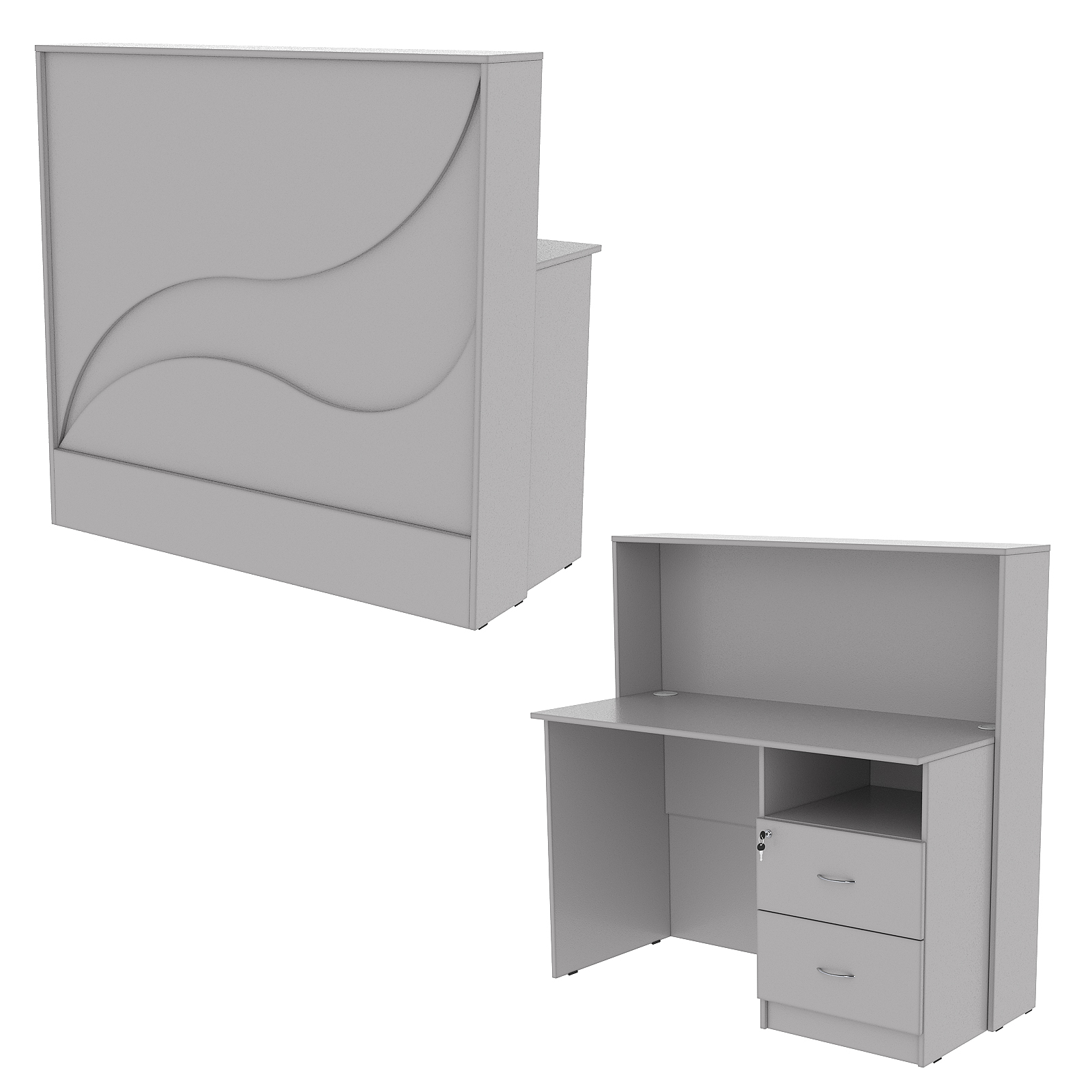 Ресепшн "Нежность Волны" №1Б с правосторонней тумбой с ящиками, Серый