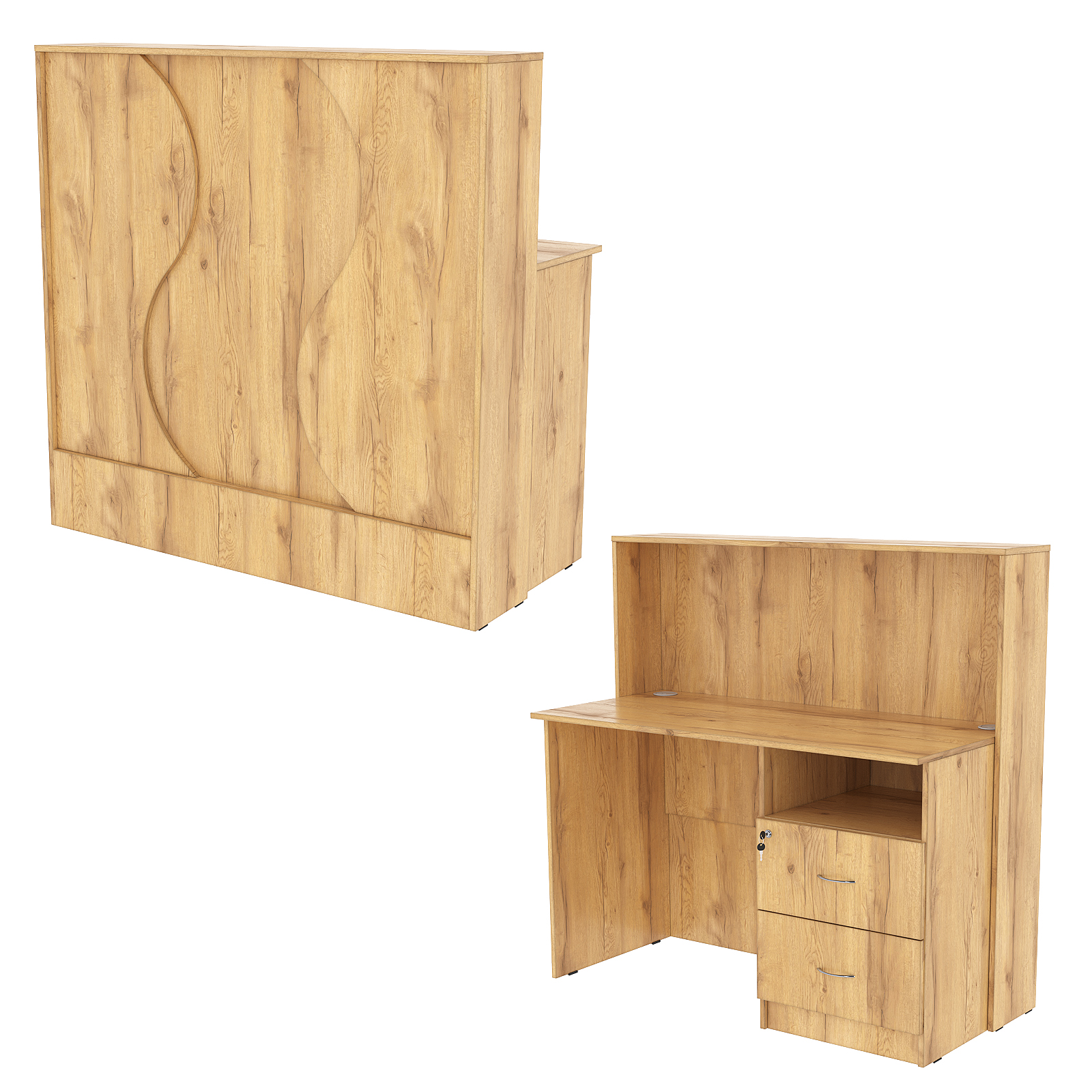 Ресепшн Нежность Волны №1В с правосторонней тумбой с ящиками, Дуб Золотистый