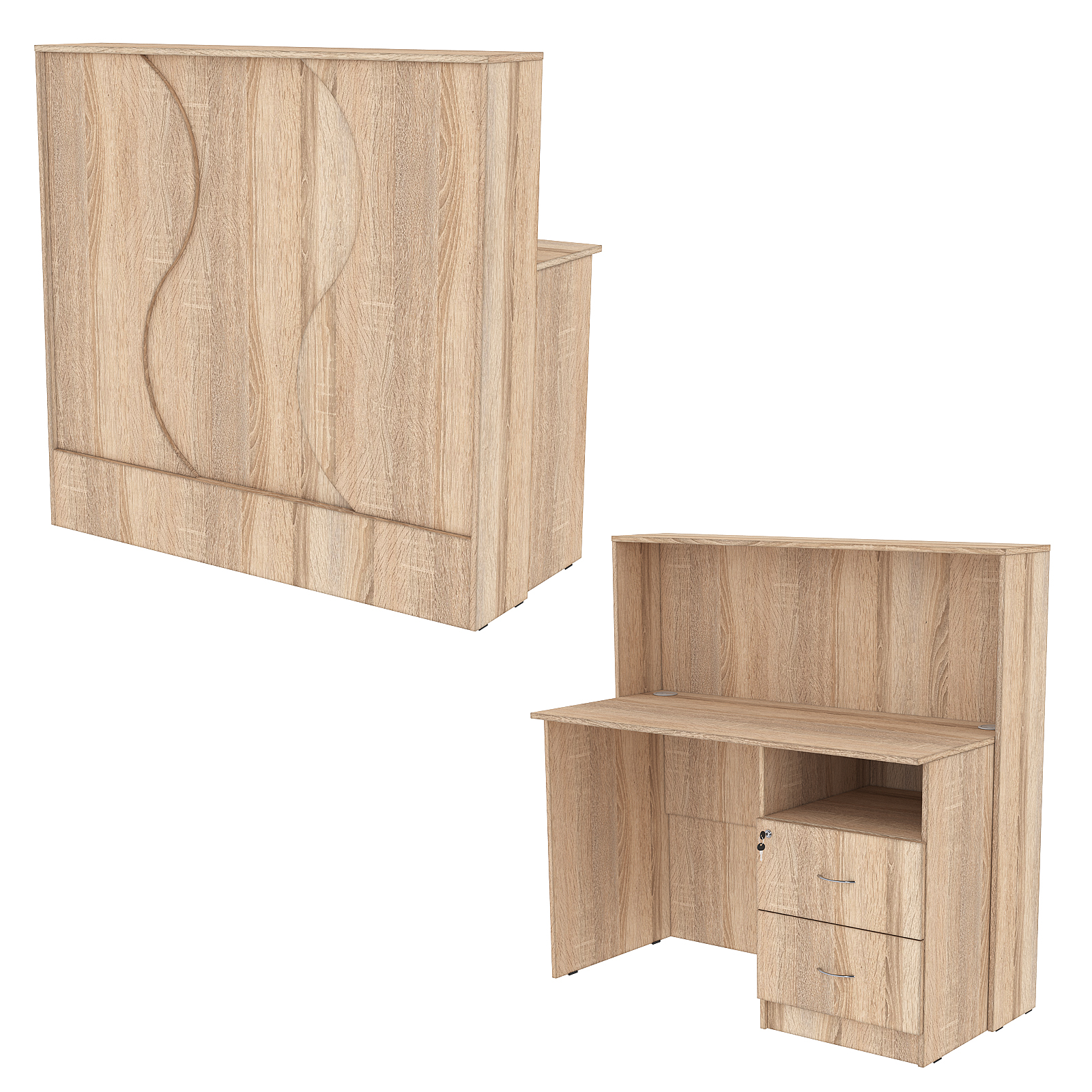 Ресепшн Нежность Волны №1В с правосторонней тумбой с ящиками, Дуб Сонома