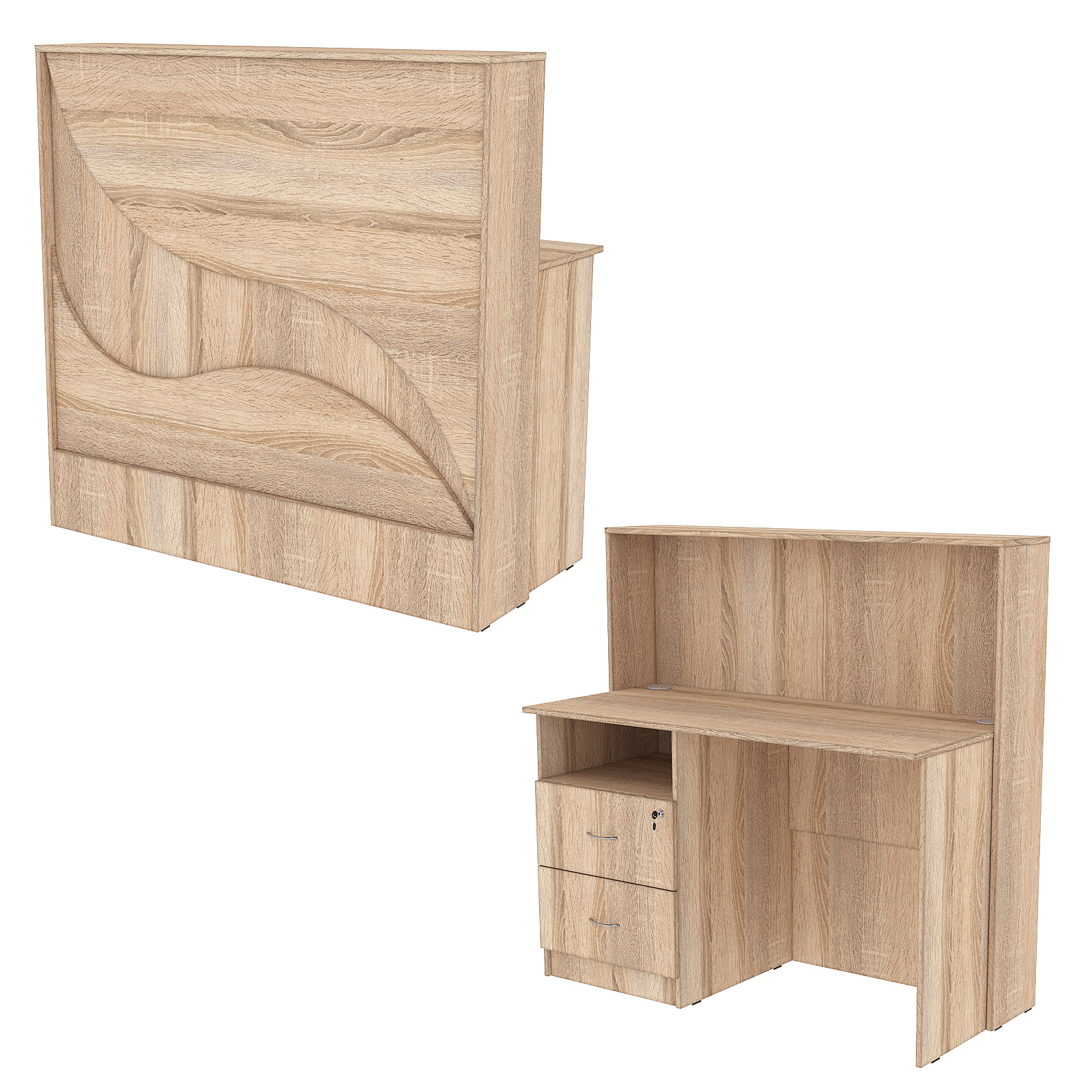Ресепшн Нежность Волны №1Б с левосторонней тумбой с ящиками, Дуб Сонома