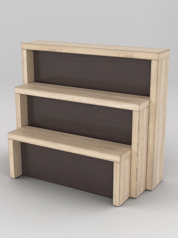 Комплект из трех подставок разной высоты выглядит необычно и привлекает внимание покупателя.