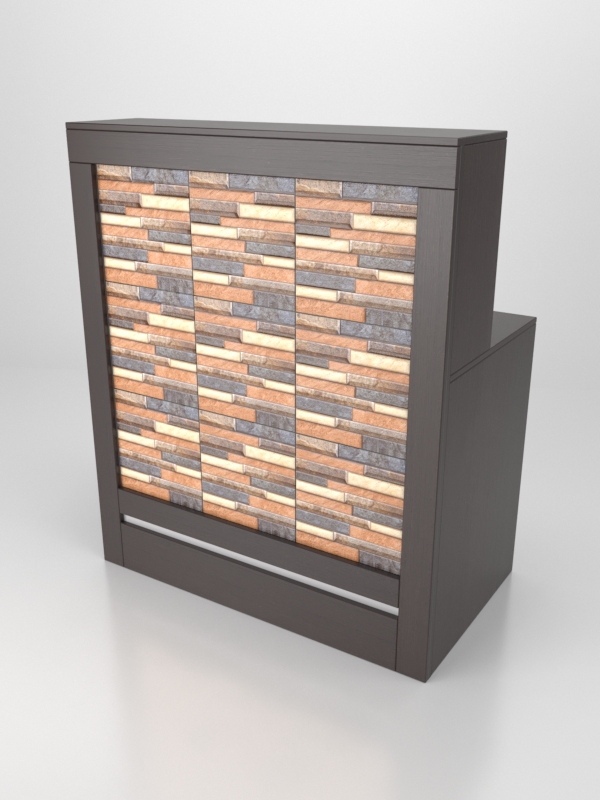 Каркас стойки выполнен из ЛДСП. Фасадная часть отделана декоративной пластиковой панелью, имитирующей кладку из серого кирпича.