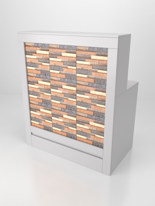 Каркас стойки выполнен из ЛДСП. Фасадная часть отделана декоративной пластиковой панелью, имитирующей кладку из серого кирпича.