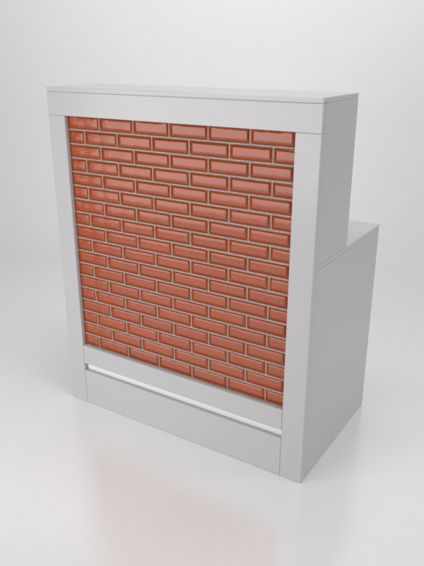 Каркас стойки выполнен из ЛДСП. Фасадная часть отделана декоративной пластиковой панелью, имитирующей кирпичную стену.