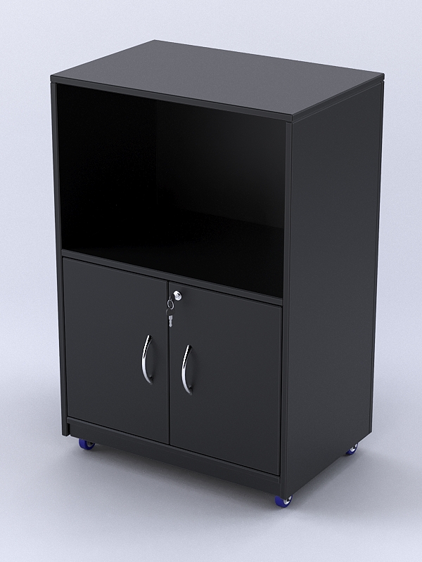 Фасад прилавка является закрытым. С внутренней стороны имеется отделение для инвентаря и накопитель с распашными дверками.