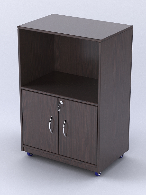 Фасад прилавка является закрытым. С внутренней стороны имеется отделение для инвентаря и накопитель с распашными дверками.