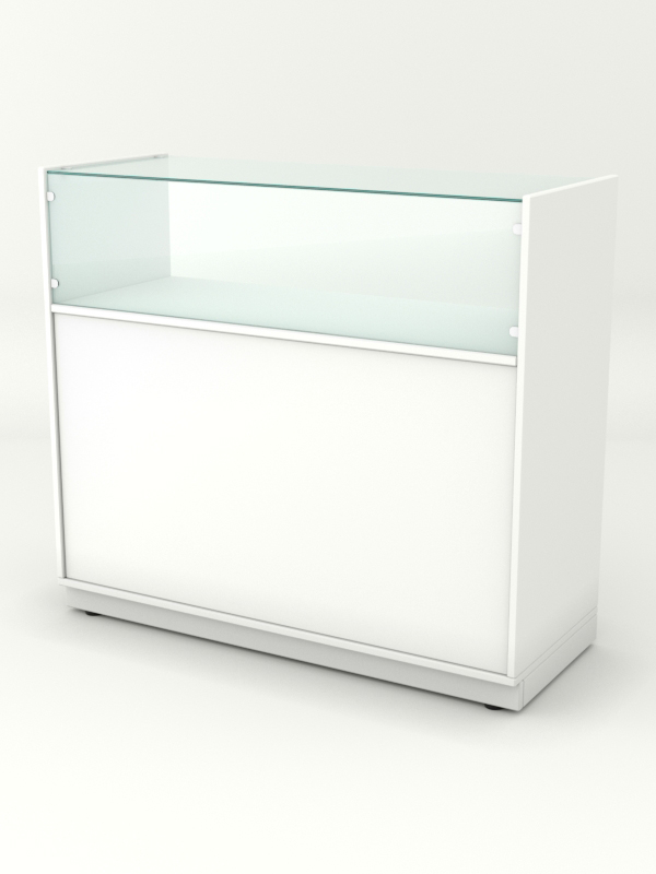Прилавок предназначен для демонстрации и хранения чайно-кофейной продукции, а также служит входом в торговую зону. Для удобства перемещения основание оборудовано колесами. Конструкция включает стеклянную витрину и накопитель с полкой. Прилавок является открытым со стороны продавца. Цвет корпуса можно заказать в семи стандартных вариантах, а также подобрать в палитре на заказ.