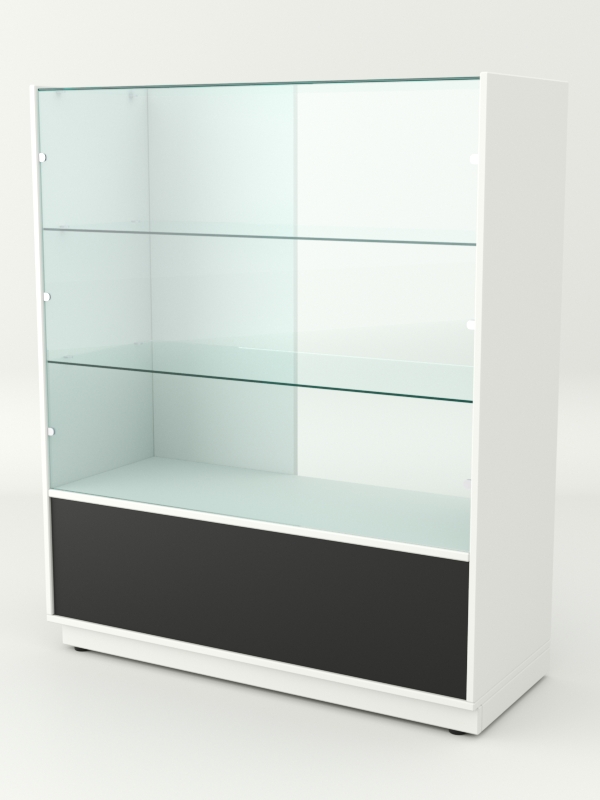 Прилавок предназначен для демонстрации и хранения чайно-кофейной продукции. Конструкция включает стеклянную витрину с двумя полками и накопитель. Прилавок открыт внутри, слева от продавца. Справа находится стенка из ДСП. Цвет корпуса можно заказать в семи стандартных вариантах, а также подобрать в палитре на заказ.
