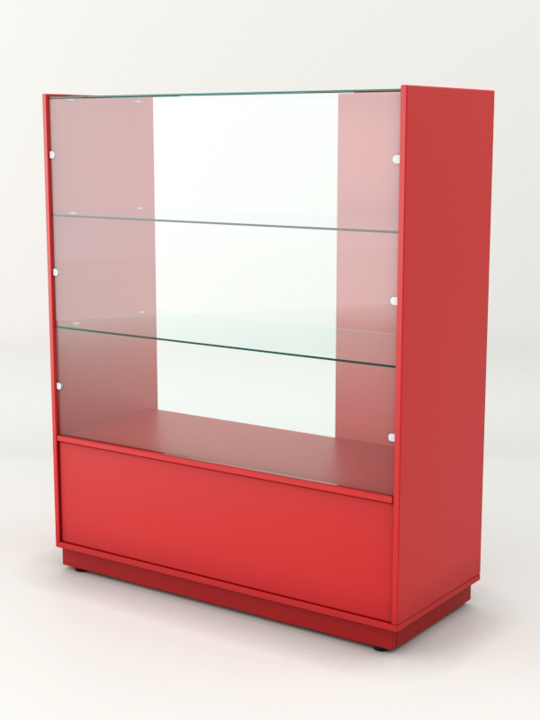 Прилавок предназначен для демонстрации и хранения чайно-кофейной продукции. Конструкция включает стеклянную витрину с двумя полками и накопитель. Прилавок открыт внутри, справа от продавца. Слева находится стенка из ДСП. Цвет корпуса можно заказать в семи стандартных вариантах, а также подобрать в палитре на заказ.
