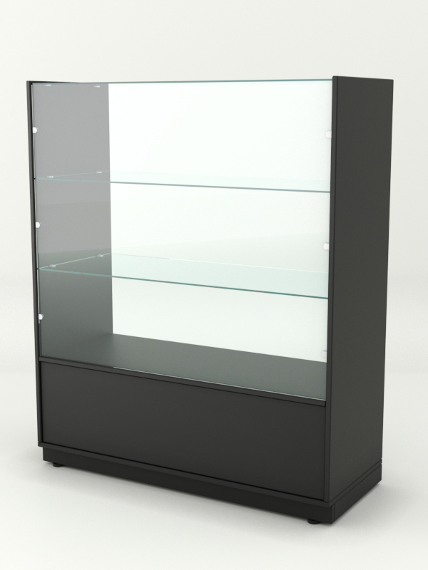 Прилавок предназначен для демонстрации и хранения чайно-кофейной продукции. Конструкция включает стеклянную витрину с двумя полками и накопитель. Прилавок открыт с внутренней стороны. Цвет корпуса можно заказать в семи стандартных вариантах, а также подобрать в палитре на заказ.