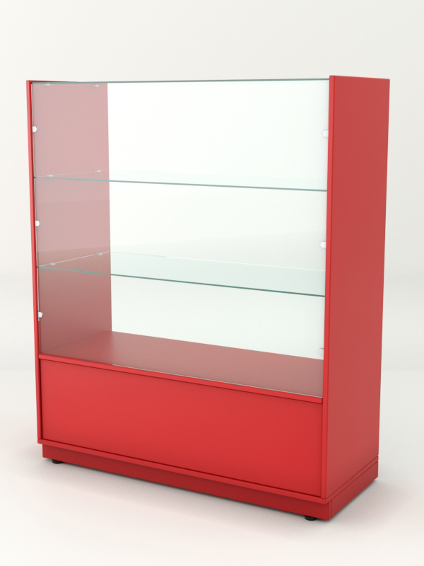 Прилавок предназначен для демонстрации и хранения чайно-кофейной продукции. Конструкция включает стеклянную витрину с двумя полками и накопитель. Прилавок открыт с внутренней стороны. Цвет корпуса можно заказать в семи стандартных вариантах, а также подобрать в палитре на заказ.