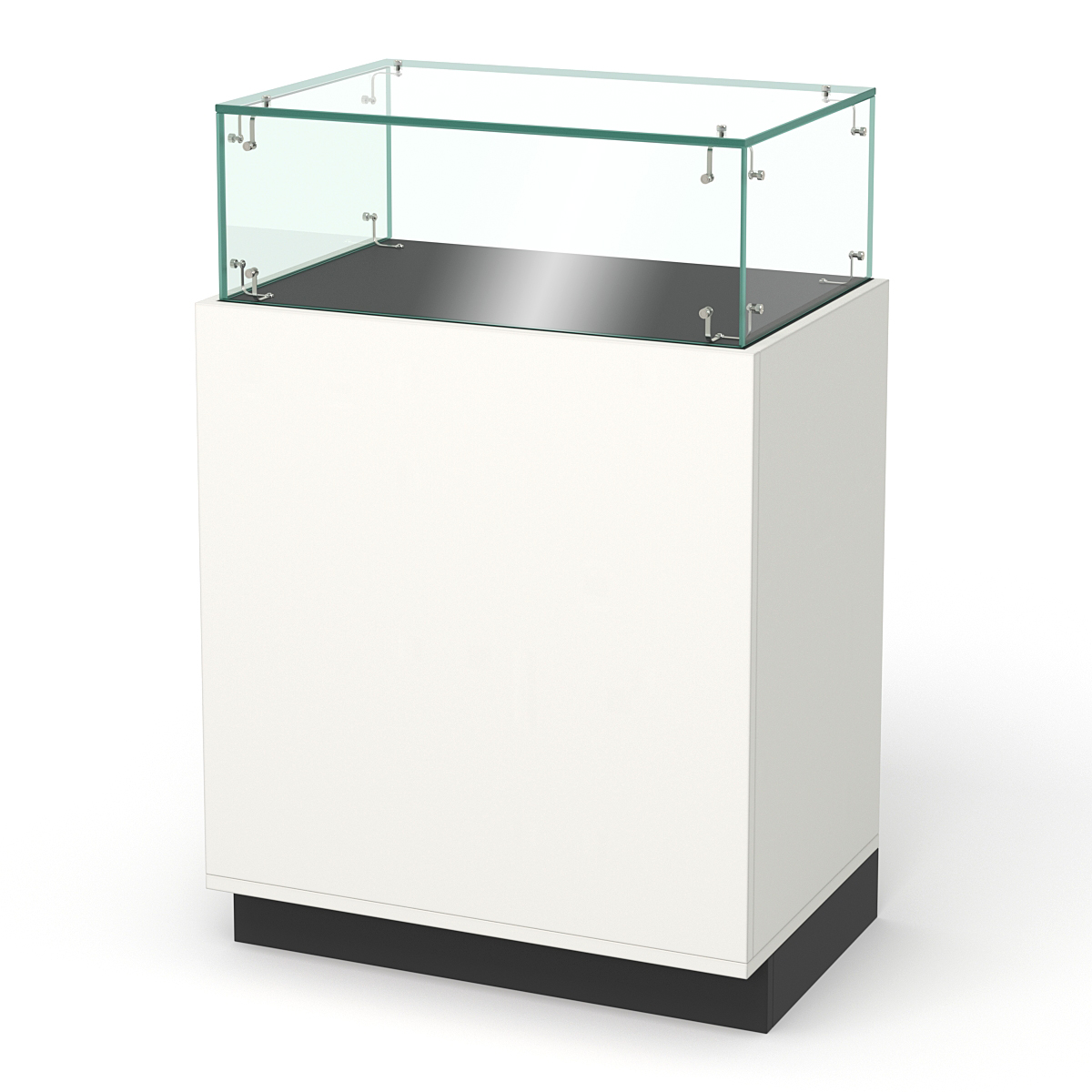 Конструкция состоит из витрины и накопителя с полкой. Дверцы накопителя закрываются на ключ.