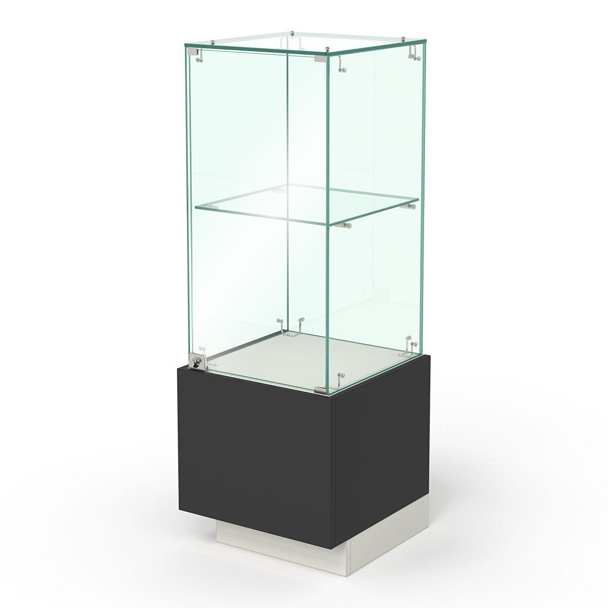 Конструкция состоит из подиума и витрины с полкой. Дверца витрины расположена под правую руку продавца.