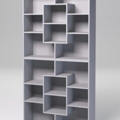 Разместить книги, детские игрушки, предметы обихода поможет практичный и уютный стеллаж. Конструкция состоит из двух отделений, расположенных одно над другим. В центре каждого отделения находится секция с полкой. Каждое отделение содержит восемь ячеек.