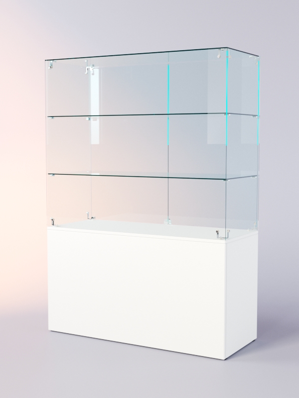 Каркас прилавка выполнен из ЛДСП. Корпус и полки витрины стеклянные. Витрина и накопитель оборудованы распашными дверцами, открывающимися с внутренней стороны.