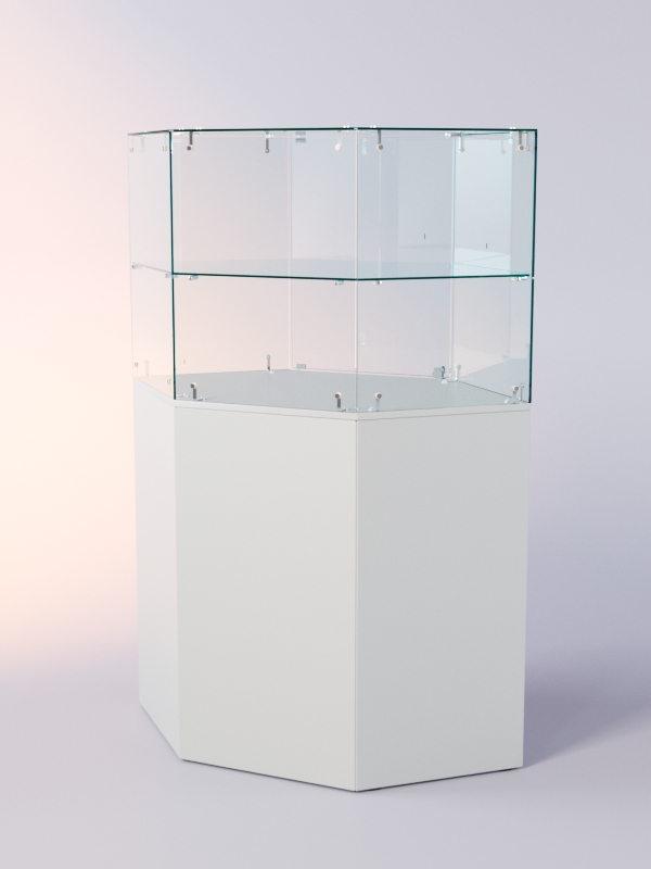 Каркас прилавка выполнен из ЛДСП. Корпус и полка витрины стеклянные. Витрина и накопитель оборудованы распашными дверками, открывающимися со стороны продавца.