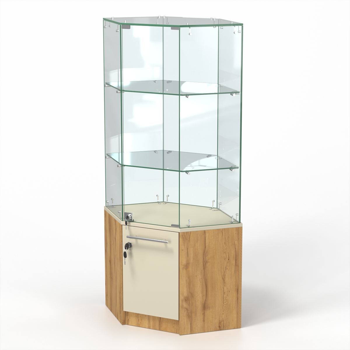 Оригинальная форма в виде шестигранника делает данный прилавок украшением любого магазина.