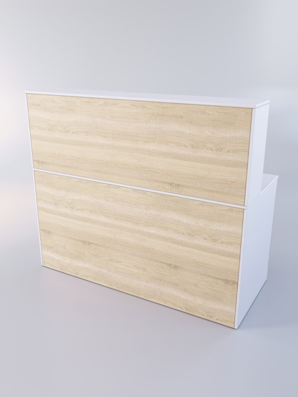 Модель состоит из стола и надстройки. Надстройка содержит столешницу, одну большую и четыре малые секции. Стол оборудован тумбой с тремя выдвижными ящиками, расположенной слева.