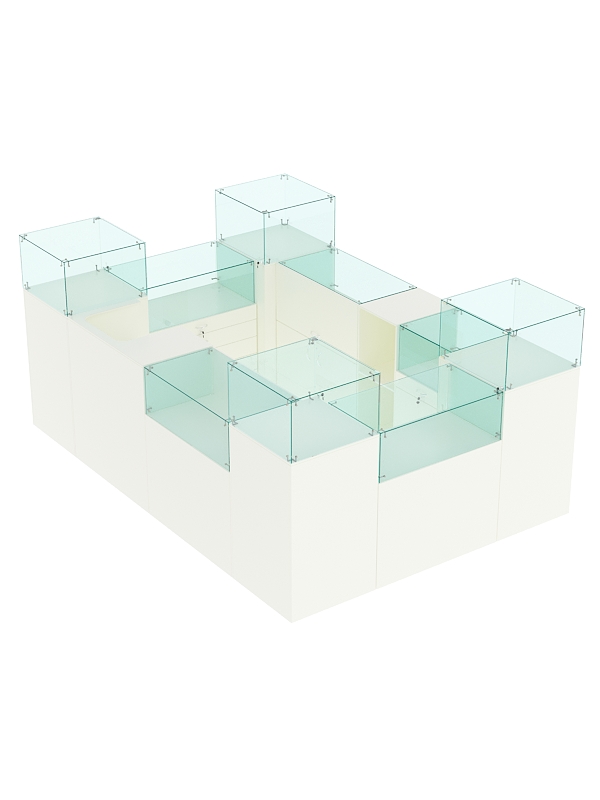 Комплект прилавков предназначен для организации торговой точки по продаже бижутерии, аксессуаров, сувениров. Может располагаться в торговых центрах, супермаркетах, вокзалах.