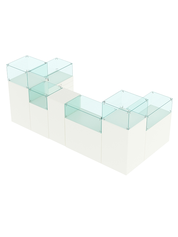 Комплект прилавков предназначен для организации торговой точки по продаже бижутерии, аксессуаров, сувениров. Может располагаться в торговых центрах, супермаркетах, вокзалах.