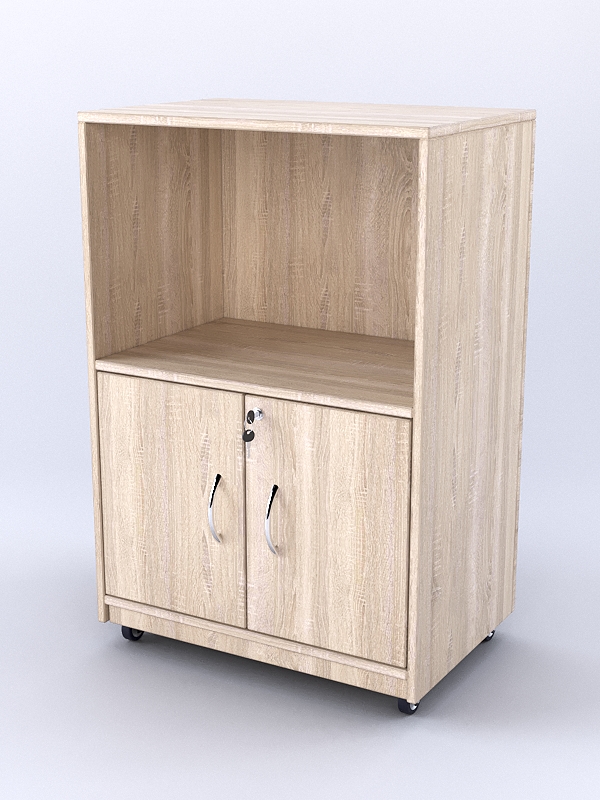 Фасад прилавка является закрытым. С внутренней стороны имеется отделение для инвентаря и накопитель с распашными дверками.