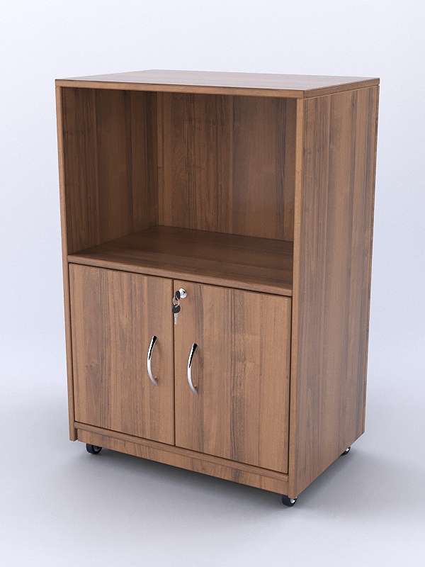 Фасад прилавка является закрытым. С внутренней стороны имеется отделение для инвентаря и накопитель с распашными дверками.