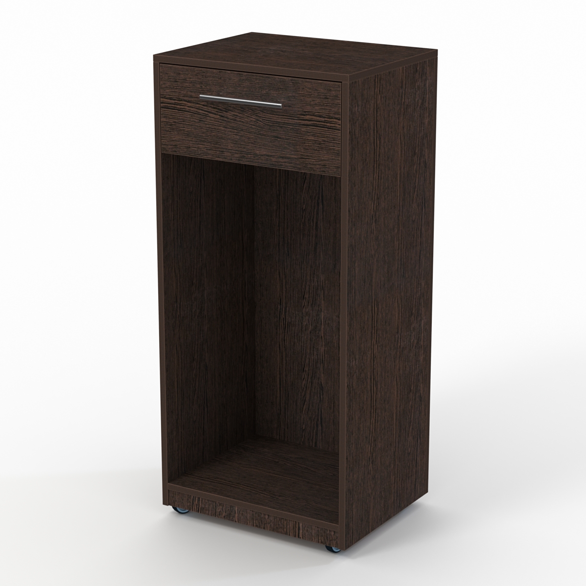 Прилавок предназначен для входа в торговый островок. Для удобного перемещения конструкция оборудована 4-мя колесами. Спереди прилавок полностью закрытый. С внутренней стороны имеется выдвижной ящик и большое отделение для хранения.