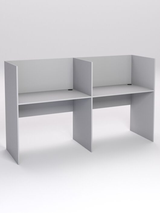 Стол предназначен для комфортной работы оператора колл-центра. Стол двухсекционный, с фронтальной и боковыми перегородками. Конструкция классическая, с прямыми стенками. Каркас выполнен из ЛДСП. Имеется семь стандартных расцветок. Другие цвета подбираются в палитре на заказ.