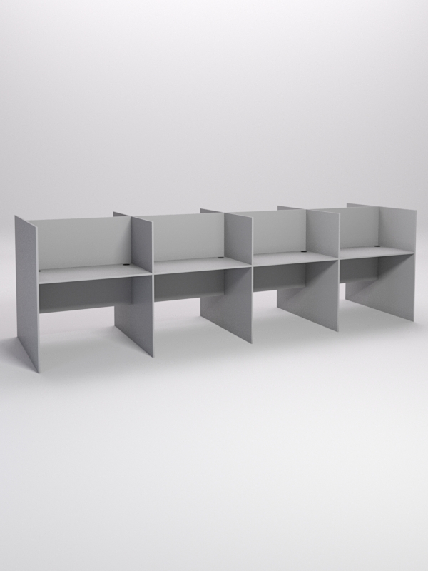 Стол предназначен для комфортной работы оператора колл-центра. Двухсторонняя конструкция состоит из четырех секций, образуя восемь рабочих мест. Фронтальная и боковые стенки — прямые. Каркас выполнен из ЛДСП. Имеется семь стандартных расцветок. Другие цвета подбираются в палитре на заказ.