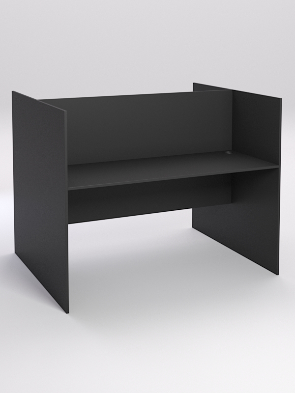 Стол предназначен для комфортной работы оператора колл-центра. Двухсторонняя конструкция оборудована на два рабочих места. Фронтальная и боковые стенки — прямые. Каркас выполнен из ЛДСП. Имеется семь стандартных расцветок. Другие цвета подбираются в палитре на заказ.