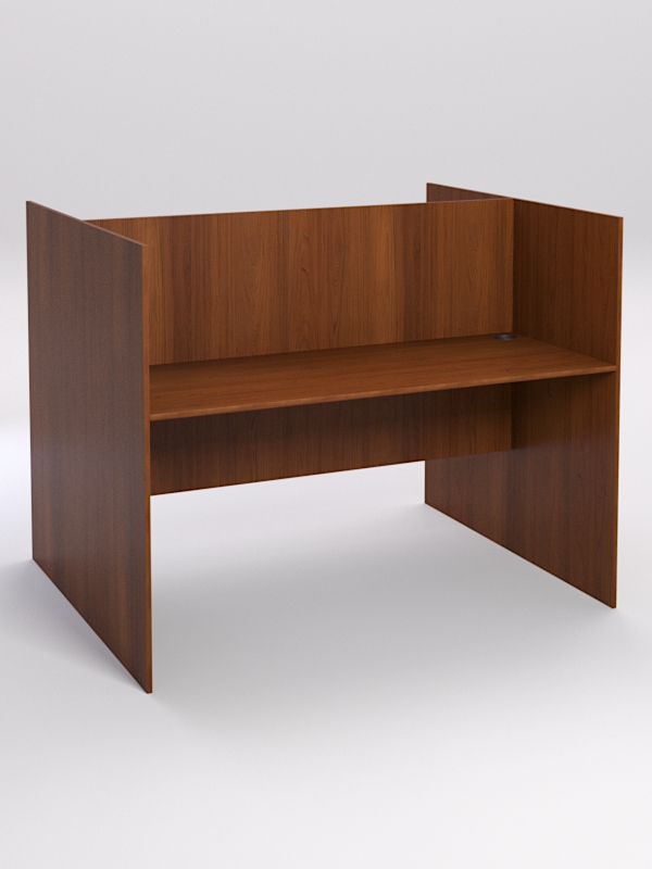 Стол предназначен для комфортной работы оператора колл-центра. Двухсторонняя конструкция оборудована на два рабочих места. Фронтальная и боковые стенки — прямые. Каркас выполнен из ЛДСП. Имеется семь стандартных расцветок. Другие цвета подбираются в палитре на заказ.