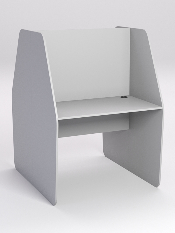 Стол предназначен для комфортной работы оператора колл-центра. Двухсторонняя конструкция оборудована на два рабочих места. Боковые перегородки имеют форму трапеции. Каркас выполнен из ЛДСП. Имеется семь стандартных расцветок. Другие цвета подбираются в палитре на заказ.