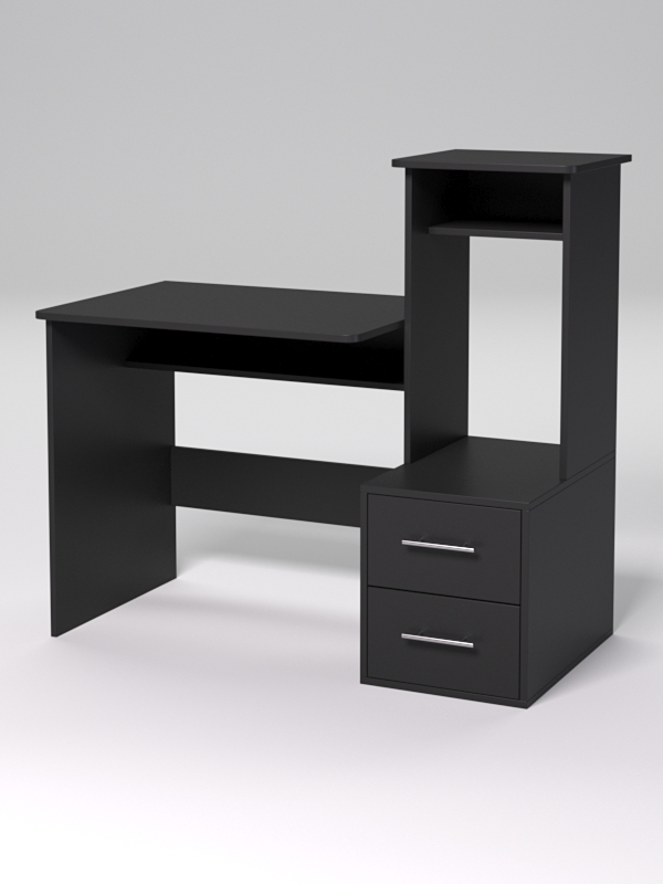 Офисный компьютерный стол предназначен для работы оператора ПК, а также других сотрудников, использующих в работе компьютер — менеджеров, кадровиков, секретарей. Конструкция позволяет комфортно обустроить рабочее место и рационально организовать рабочее пространство. Стол имеет просторную столешницу, под которой располагается полка. Справа располагается модуль со столешницей, местом под системный блок и тумбой с выдвижными ящиками.