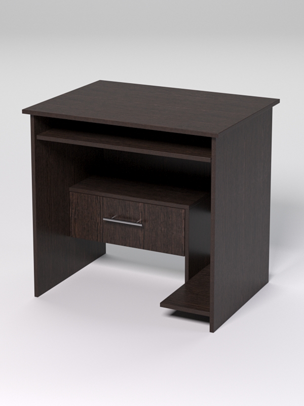Офисный компьютерный стол предназначен для обустройства рабочего места сотрудников различного профиля — менеджера, делопроизводителя, секретаря. Стол оборудован выдвижной полкой под клавиатуру, подставкой под системный блок и полкой с ящиком для хранения. Просторная плоская столешница позволяет пользоваться этим столом, как письменным.