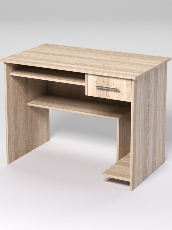 Офисный компьютерный стол предназначен для обустройства рабочего места оператора. Стол оборудован всем необходимым: выдвижной полкой под клавиатуру, подставкой под системный блок, полкой и выдвижным ящиком. Просторная плоская столешница позволяет использовать данный стол для письма. Такой компьютерный стол — удачный вариант для работников, использующих в процессе работы компьютер: менеджера, делопроизводителя, секретаря.