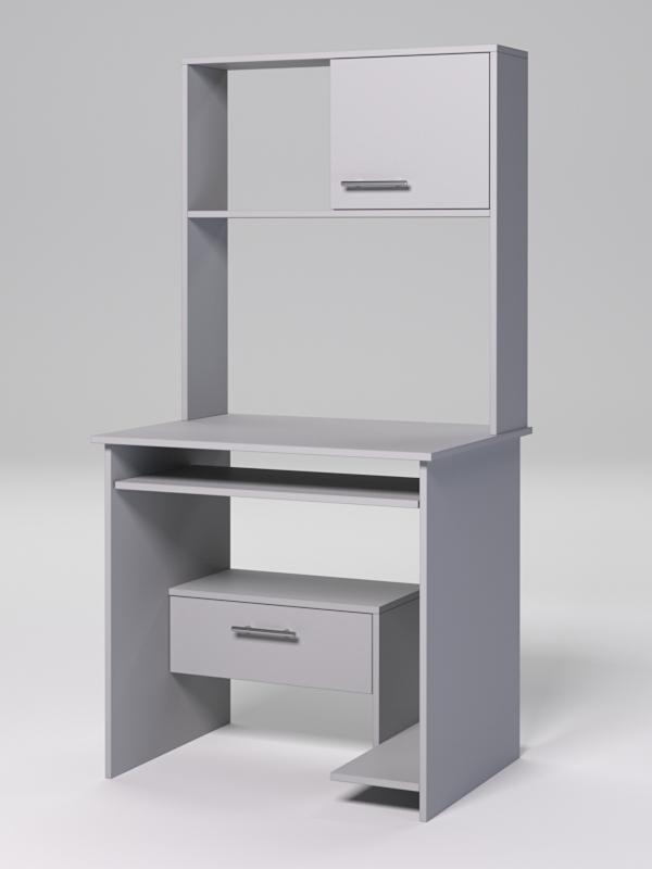 Офисный компьютерный стол предназначен для полноценного обустройства рабочего места оператора. Стол оборудован выдвижной полкой под клавиатуру, подставкой под системный блок, выдвижным ящиком для хранения. Сверху находится надстройка с полкой и шкафчиком.