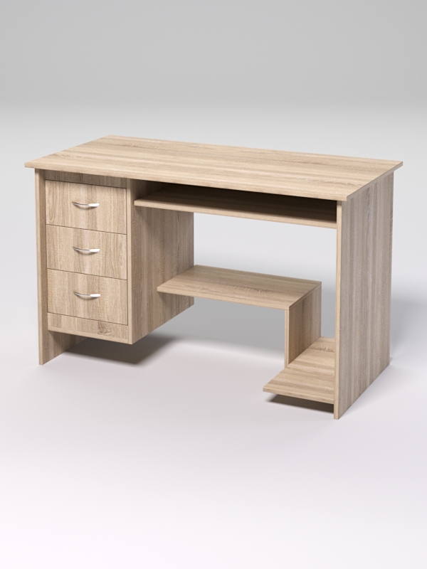 Офисный компьютерный стол предназначен для организации рабочего места сотрудников различного профиля — оператора, менеджера, секретаря. Просторная столешница позволяет использовать такой стол для письменной работы. Стол оборудован выдвижной полкой под клавиатуру, подставкой под системный блок, тремя выдвижными ящиками.