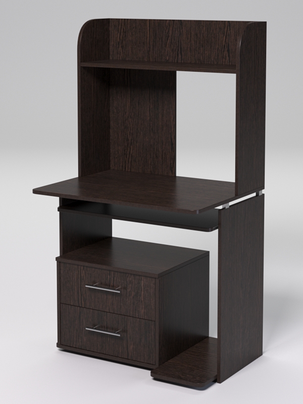 Компактный офисный компьютерный стол подойдет для организации рабочего места в помещениях с ограниченной площадью. Такой компьютерный стол — удачный вариант для работников, совмещающих несколько видов деятельности. Стол оборудован полкой под клавиатуру, платформой под системный блок, тумбой с двумя выдвижными ящиками. Сверху имеется надстройка с полкой для хранения.
