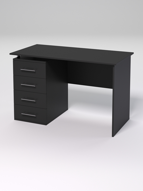 Офисный письменный стол подойдет для работы сотрудников различного профиля — менеджера, делопроизводителя, секретаря. Универсальная конструкция стола позволяет использовать его для работы с компьютером и другой офисной техникой. Такой компьютерный стол — удачный вариант для работников, совмещающих несколько видов деятельности. Стол оборудован тумбой с четырьмя выдвижными ящиками.
