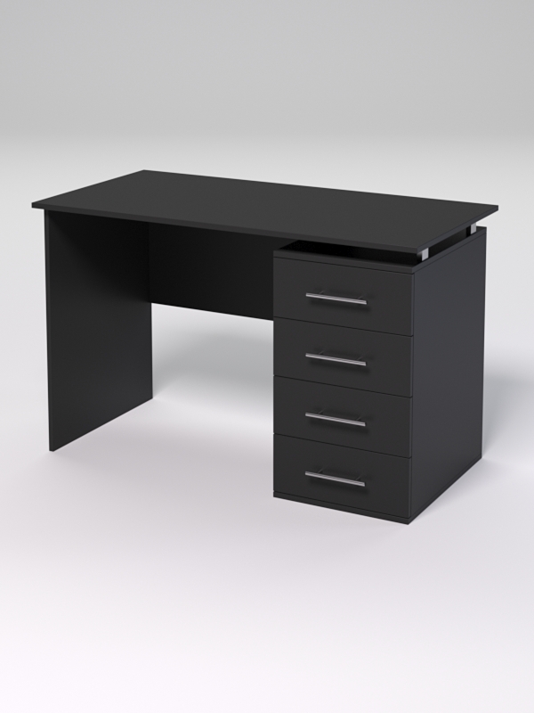 Офисный письменный стол подойдет для работы сотрудников различного профиля — менеджера, делопроизводителя, секретаря. Универсальная конструкция стола позволяет использовать его для работы с компьютером и другой офисной техникой. Такой компьютерный стол — удачный вариант для работников, совмещающих несколько видов деятельности. Стол оборудован тумбой с четырьмя выдвижными ящиками.