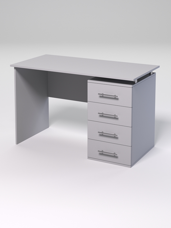 Офисный письменный стол подойдет для работы сотрудников различного профиля — менеджера, делопроизводителя, секретаря. Универсальная конструкция стола позволяет использовать его для работы с компьютером и другой офисной техникой. Такой компьютерный стол — удачный вариант для работников, совмещающих несколько видов деятельности. Стол оборудован тумбой с четырьмя выдвижными ящиками.
