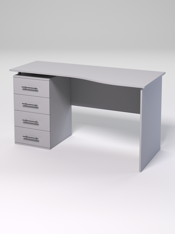 Офисный компьютерный стол предназначен для организации рабочего места и комфортной работы оператора, а также сотрудников других отраслей, использующих компьютер, — менеджера, делопроизводителя, секретаря. Стол имеет эргономичную столешницу, с выемкой для сиденья; оборудован тумбой с четырьмя выдвижными ящиками.