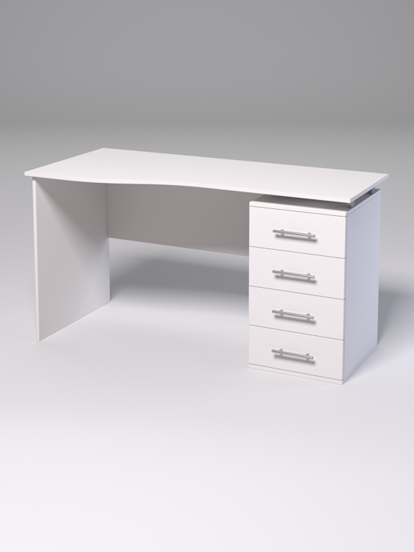 Офисный компьютерный стол подойдет для организации рабочего места и комфортной работы оператора, а также сотрудников других отраслей, использующих компьютер, — менеджера, делопроизводителя, секретаря. Стол имеет эргономичную столешницу, с выемкой для сиденья; оборудован тумбой с четырьмя выдвижными ящиками.