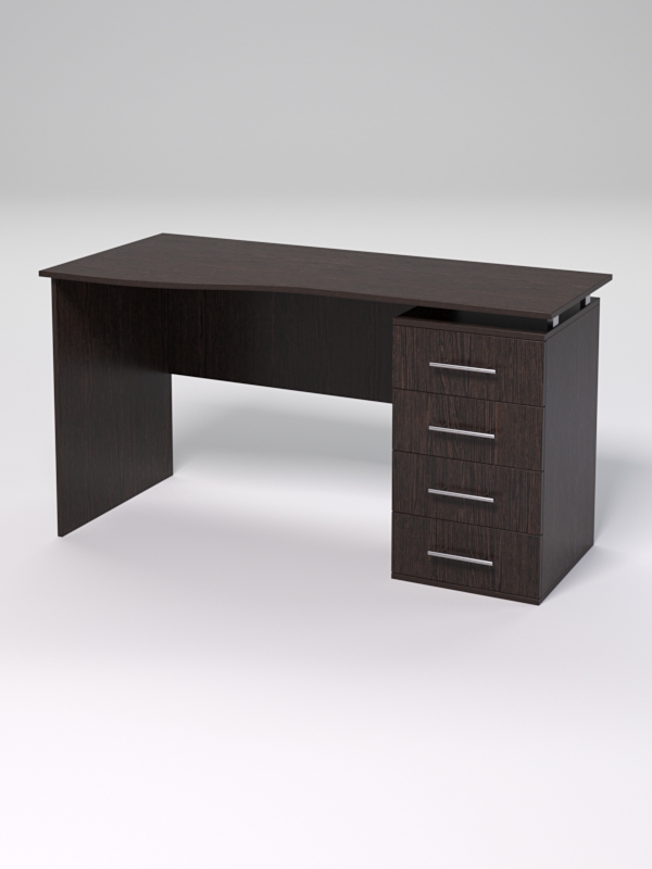 Офисный компьютерный стол подойдет для организации рабочего места и комфортной работы оператора, а также сотрудников других отраслей, использующих компьютер, — менеджера, делопроизводителя, секретаря. Стол имеет эргономичную столешницу, с выемкой для сиденья; оборудован тумбой с четырьмя выдвижными ящиками.