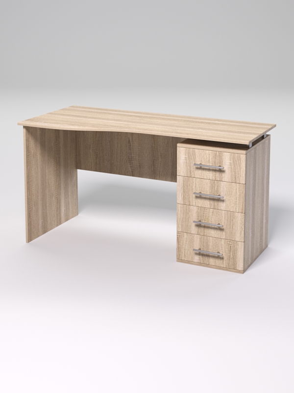 Офисный компьютерный стол подойдет для организации рабочего места и комфортной работы оператора, а также сотрудников других отраслей, использующих компьютер, — менеджера, делопроизводителя, секретаря. Стол имеет эргономичную столешницу, с выемкой для сиденья; оборудован тумбой с четырьмя выдвижными ящиками.