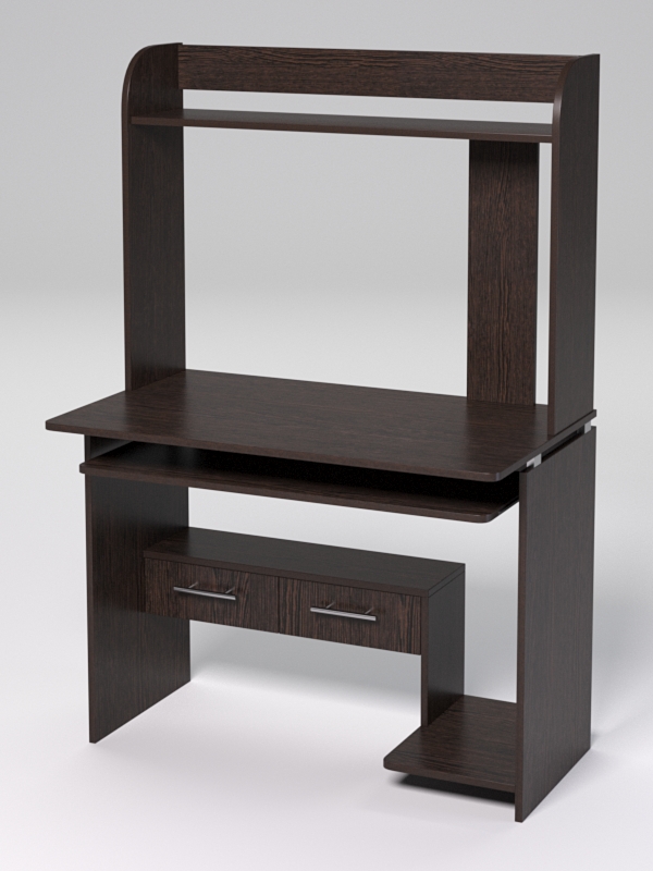 Офисный компьютерный стол подойдет для рациональной организации рабочего места и комфортной работы оператора. Стол оборудован выдвижной полкой под клавиатуру, подставкой под системный блок, двумя выдвижными ящиками. Сверху имеется надстройка с полкой.