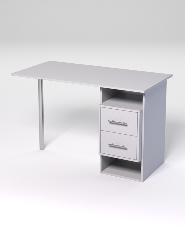 Офисный письменный стол подойдет для организации рабочего места или увеличения рабочей площади. Универсальная конструкция стола позволяет использовать его для работы с компьютером и другой офисной техникой. Такой компьютерный стол станет удачным выбором для сотрудников различного профиля — оператора, менеджера, делопроизводителя, секретаря. Стол оборудован тумбой с отделениями и двумя выдвижными ящиками. Имеет металлическую опору.