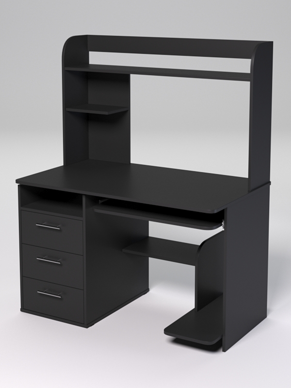 Офисный компьютерный стол подойдет для организации рабочего места и комфортной работы оператора, менеджера, делопроизводителя, секретаря. Стол оборудован полкой под клавиатуру, подставкой под системный блок, тремя выдвижными ящиками. Сверху находится надстройка с полками.