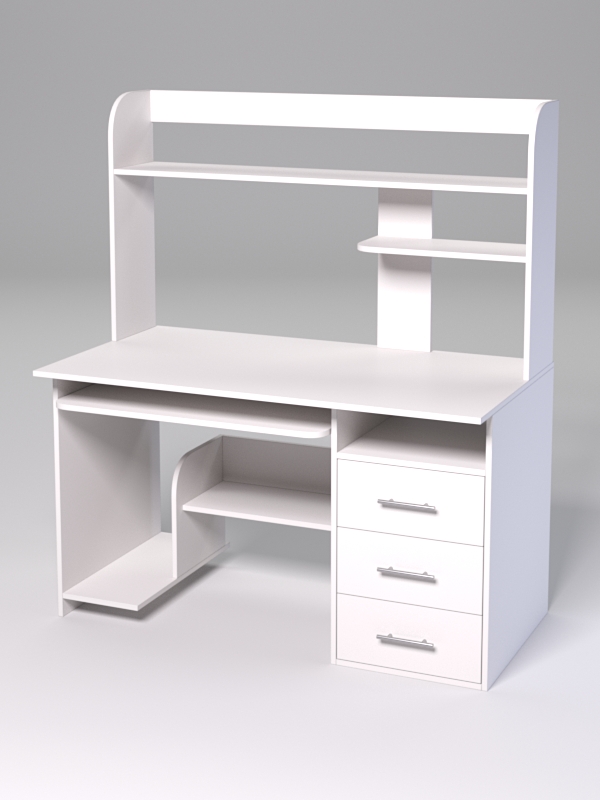 Офисный компьютерный стол подойдет для организации рабочего места и комфортной работы оператора, менеджера, делопроизводителя, секретаря. Стол оборудован полкой под клавиатуру, подставкой под системный блок, полкой для хранения, тремя выдвижными ящиками, надстройкой с полками.